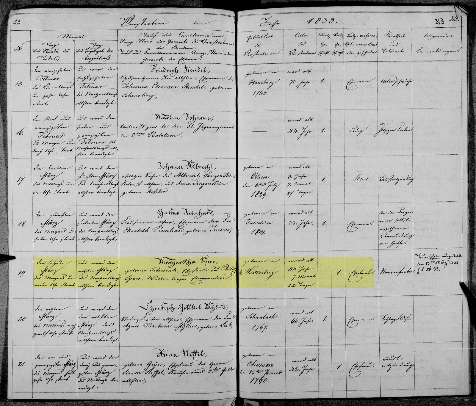 | 27 Apr 1858 | 27 May 1858 | Johanna Louisa Neubauer | Christian Neubauer, shoemaker at Tulcea; Karolina Grüningen | Adam Kain, Tuldscha, Frau Maria Knodel, Johann Gottlieb Knodel | |